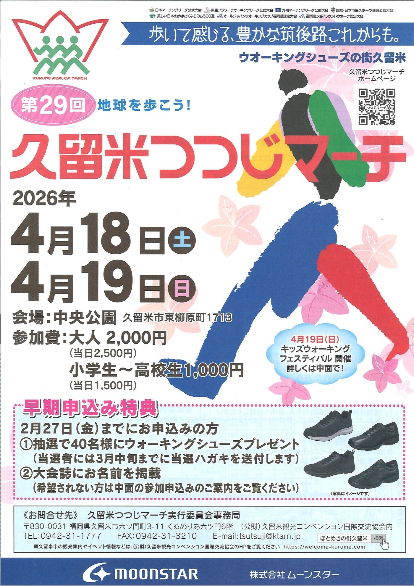 ウォーキングシューズの街久留米で4月18日(土)と4月19日(日)に行われるイベントです。