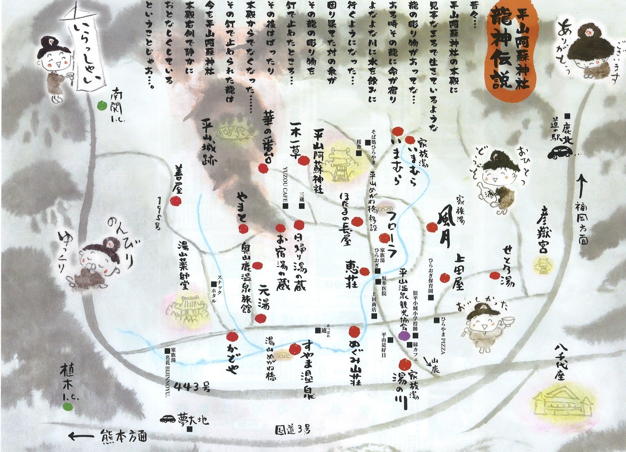 〒861-0556 熊本県山鹿市平山432(平山温泉駅前バス停から徒歩10分/駐車場:あり(50台))