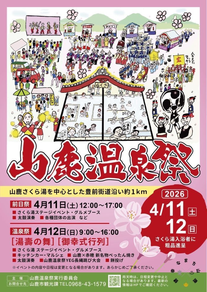 「湯の町やまが」を代表するお祭りとして明治時代以前から受け継がれてきた山鹿温泉祭が開催されます。